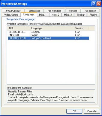 O processo para traduzir todos os menus do IrfanView para o português é simples. Baixe o arquivo e na hora de instalar, selecione a pasta “Languages” dentro do diretório do IrfanView.
